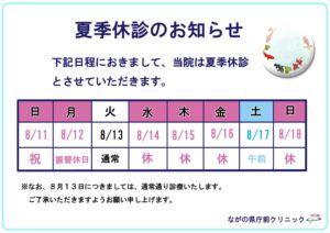 トップページ > お知らせ > 休診のお知らせ > 夏季休診のお知らせ